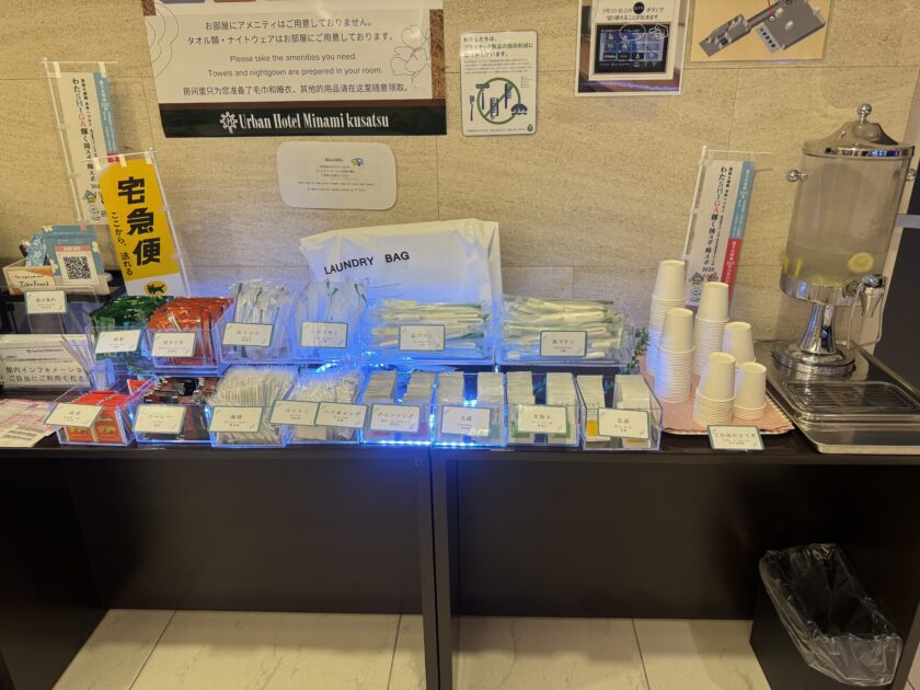 草津(滋賀県)のホテル 投稿者:S.M(代表取締役) 投稿日:2025年9月24日 カテゴリー:2025年9月 出張・取材レポート 関西 こんにちは😊 今回宿泊する施設は南草津駅目の前のアーバンホテル南草津です! 結構内装綺麗です。 アメニティはセルフ方式です。好きな物を好きなだけ?常識の範囲内で🙂☝️ セミダブルのお部屋です。十分綺麗です! ユニットバスなのが残念ですが、ビジネスホテルはほとんどがユニットバスですよね(´;ω;`) フロント横に駄菓子コーナーがありました!お子様がよく来るのでしょうか❓ こちらで2泊3日お世話になりますm(_ _)m なごやか亭🍣 まつげパーマ