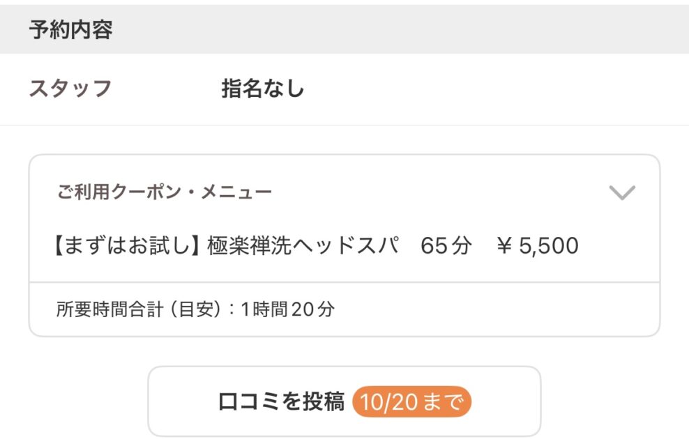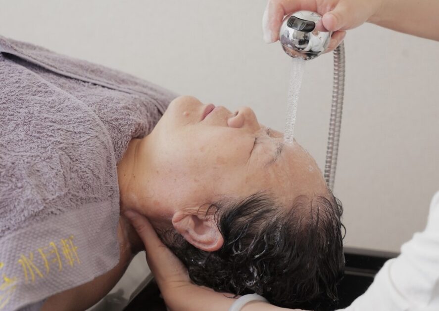 シャンプーをしながら頭皮とデコルテを揉みほぐしてもらいました。