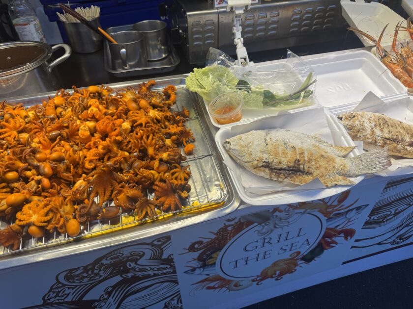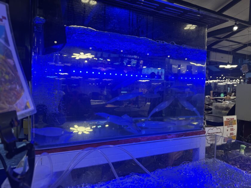これは生きた小さいエビとイカです。生きたまま食べるみたいですよ🦐🦑