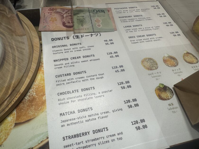 UNI Donut🍩 投稿者:S.M(代表取締役) 投稿日:2025年10月21日 カテゴリー:2025年10月 出張・取材レポート タイ ドーナツの看板を見つけしまい吸い込まれていきました。 最近どハマりしているドーナツ。しかも生ドーナツ🍩 メニュー表には色々なドーナツがありますが ないものもありました!小さいのは50バーツ(230円)、おおきいのは120バーツ買っ560円です! 私が食べたのは大きいサイズのチョコレート味です🍫 これが560円(‘o’)!!! ちょっと高いですが、あじは最高でした👍 クリームもたっぷり入っていて大満足の味です! ボディワークス BreadTalk