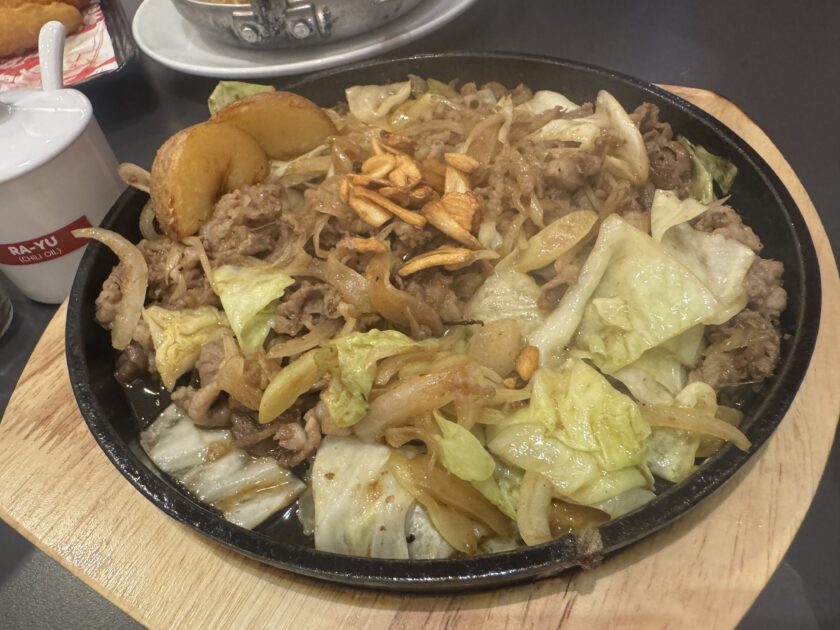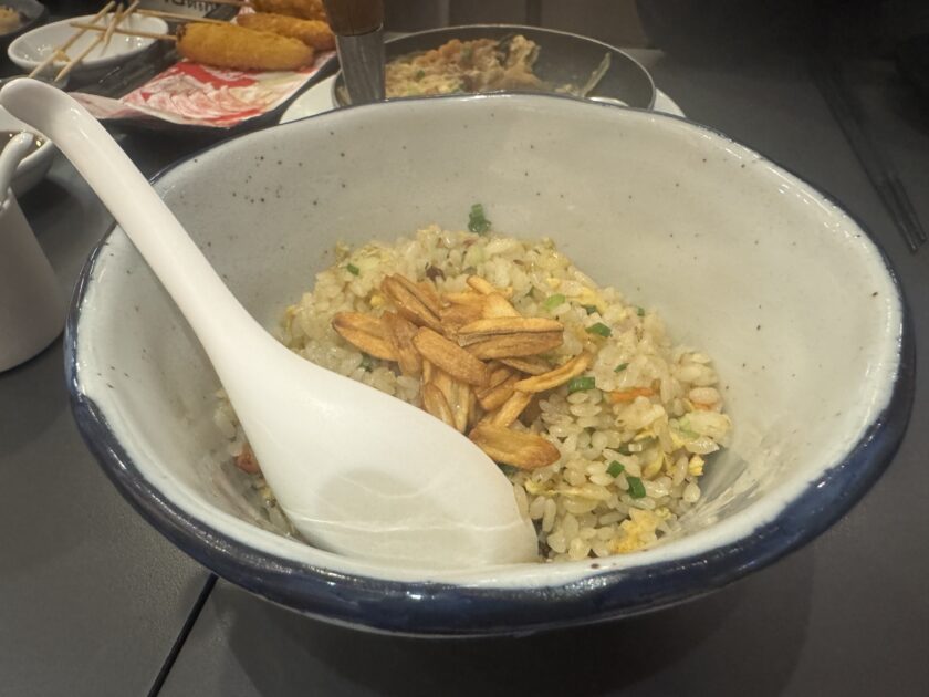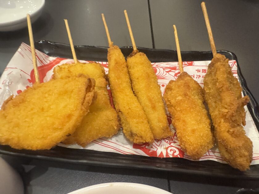 串カツ・鶏とじ・ガーリック炒飯・牛焼き肉?