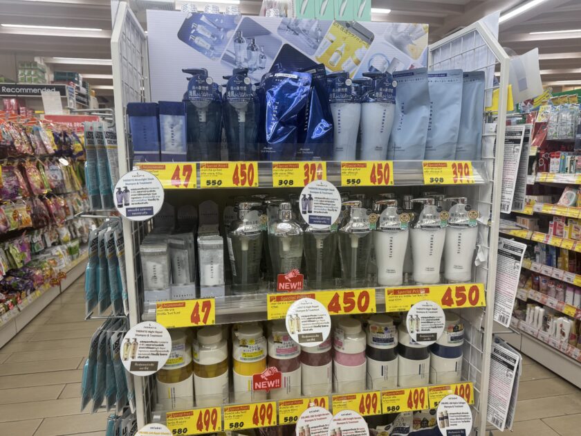 日本でよく見るアンレーベルラボやセラティスのシャンプーが売ってます。
