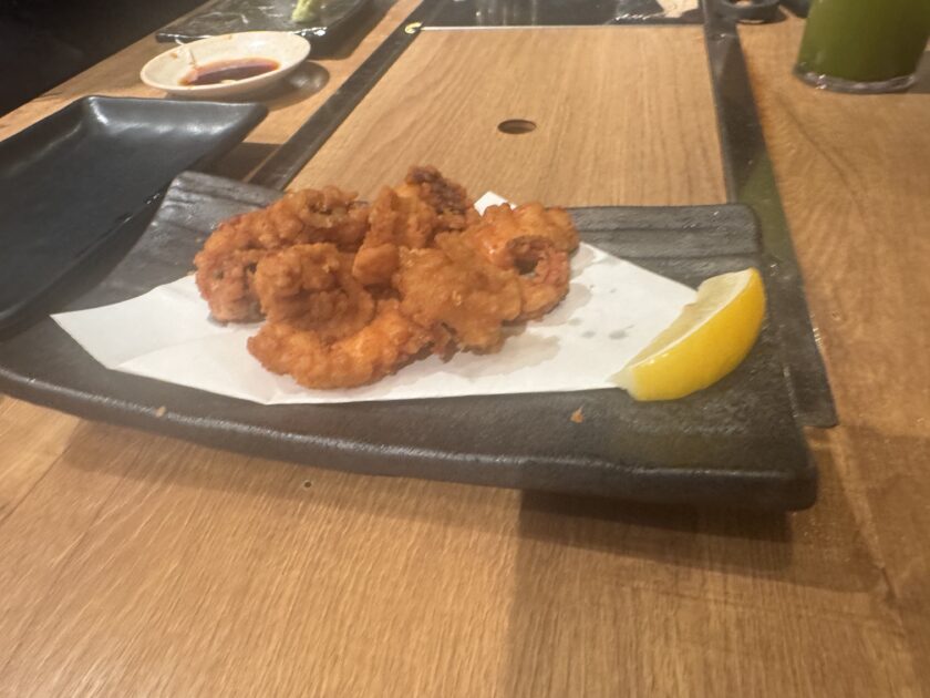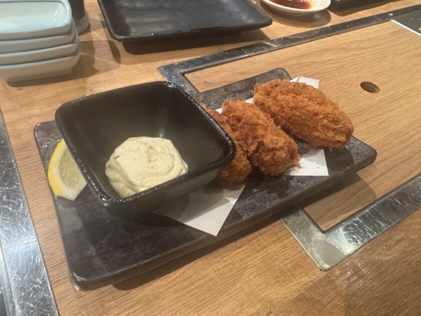 タコの唐揚げとカキフライ。衣厚めですがサクサクで美味しいです!