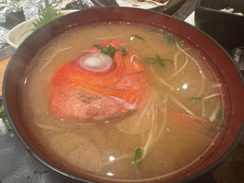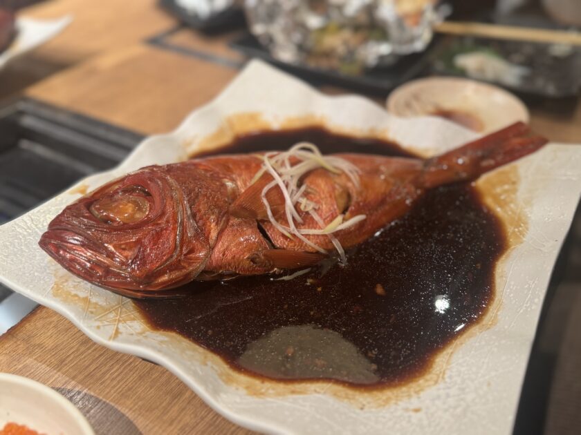これは金目鯛の煮付け!8000円くらいした気がします。注文してから30分くらいかかったので味しみしみで美味しいです!