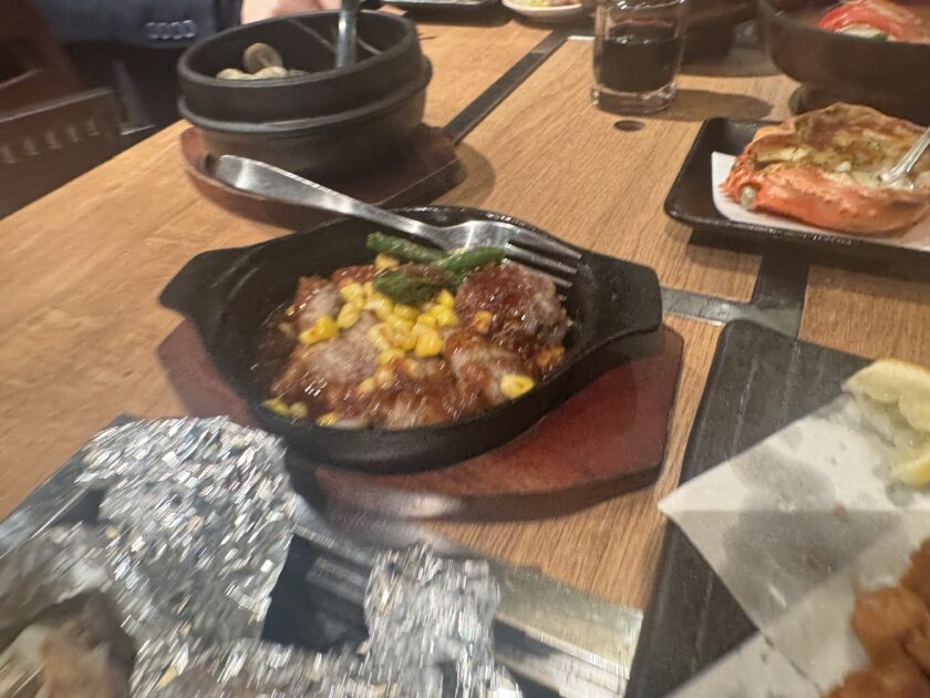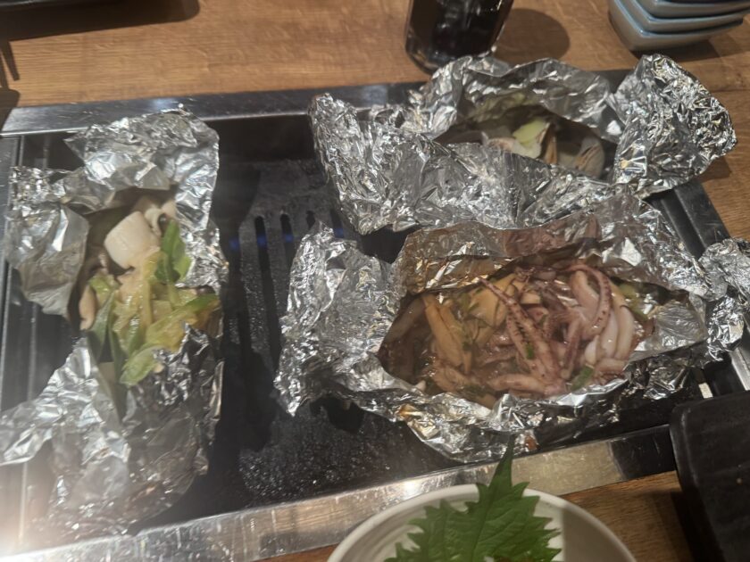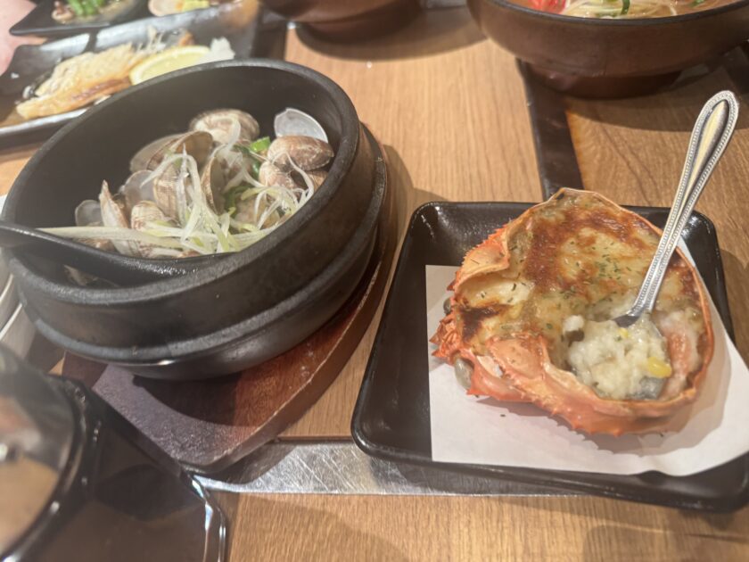金目鯛のお味噌汁・ホイル焼き・マグロステーキ・あさり酒蒸し・カニグラタン