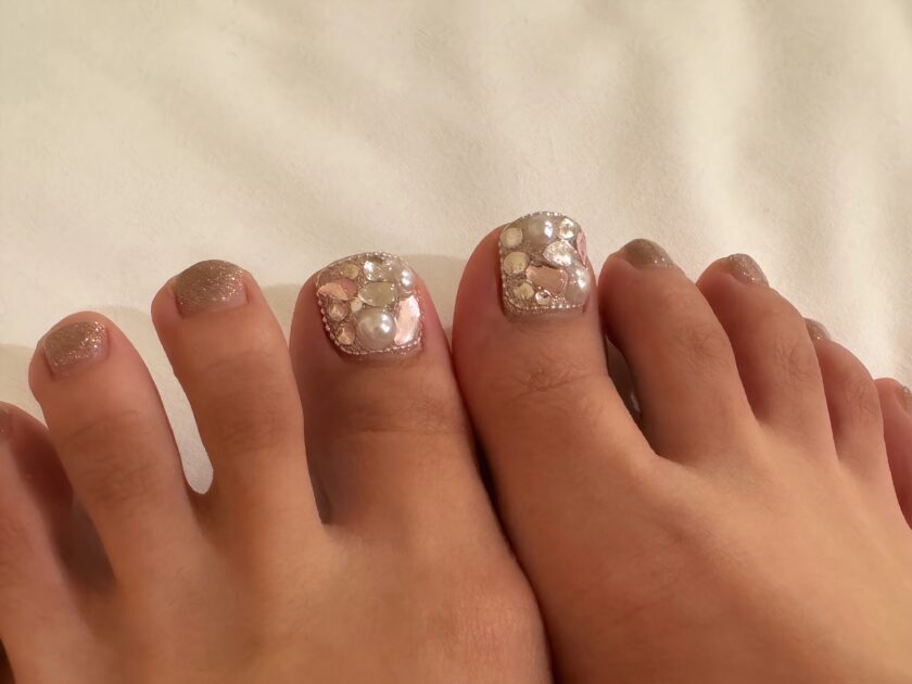 分かりずらいですが、ピンクとパールの埋めつくしをしていただきました!