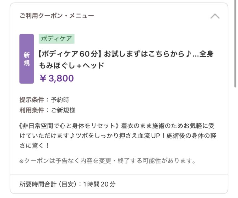 口コミ投稿で10分サービスだったので、口コミをしました◎