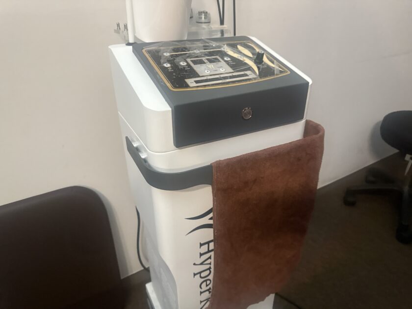 高周波を使って体を温め、脂肪やセルライトを柔らかくしてほぐすエステ機器です。電極から流れる高周波が脂肪の水分を振動させて熱を発生させ、体を温めて代謝を上げ、血行やリンパの流れを促進します。施術にはマッサージが伴うことが多く、むくみや肩こりの改善も期待できます。
