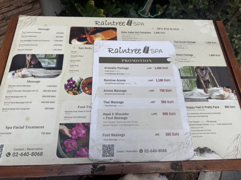 プロモーションでフットマッサージ60分が400バーツから300バーツになってました!