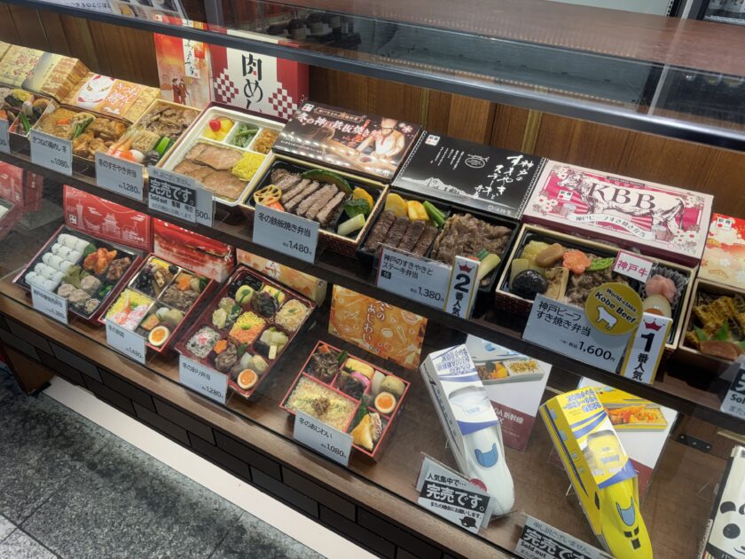 新神戸駅の駅弁屋さんでふ。売り切れ続出のクロミちゃん弁当は当然ありませんでした。
