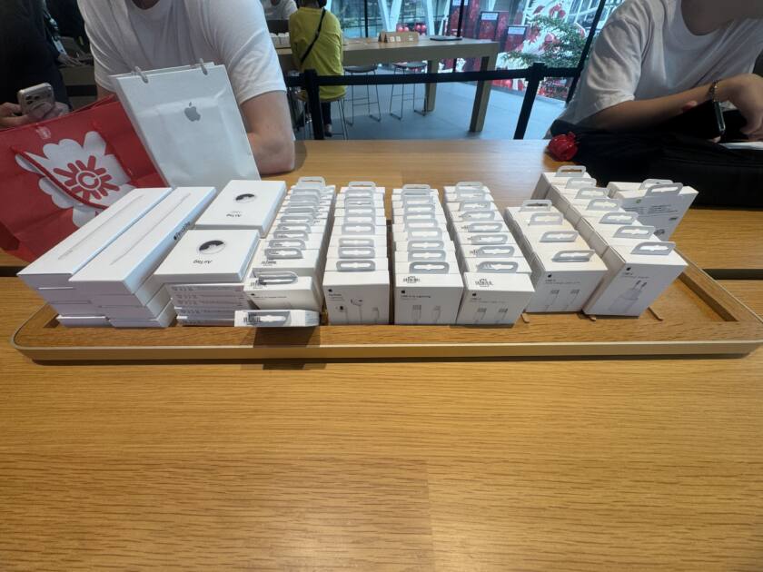 たぶんiPhoneだけでも40~50台は並んでます。なんでそんなに置いてあるのか分からないです笑