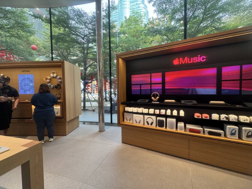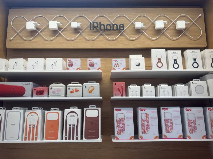 iPhone用のアクセサリーやヘッドホン、イヤホンなども数多く揃っていて、使用感を自分で試してみることもできますよ。