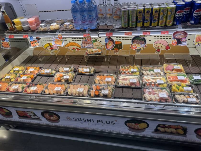すしエクスプレス🍣 投稿者:S.M(代表取締役) 投稿日:2026年2月13日 カテゴリー:2026年2月 出張・取材レポート タイ お寿司をいただいてきました! コスパ重視で、すしエクスプレスに。 美味しくないですけど、コスパが良いのでよくリピートしてます🤫 サーモンで一巻40バーツくらいです。 今日は5皿食べました!QRコードで注文出来るのでらくらく◎ 流れてるお寿司をいただいてもいいです🍣 ちゃんとカップで保護されているので安全です。 テイクアウトのお寿司も販売してますよ🍣 Apple 薬局