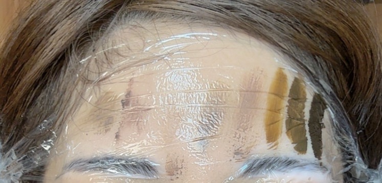 おでこにカラーを乗せて今の髪色にどの色が合うかなど好みを選んでいきますー!
