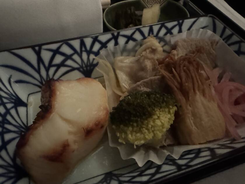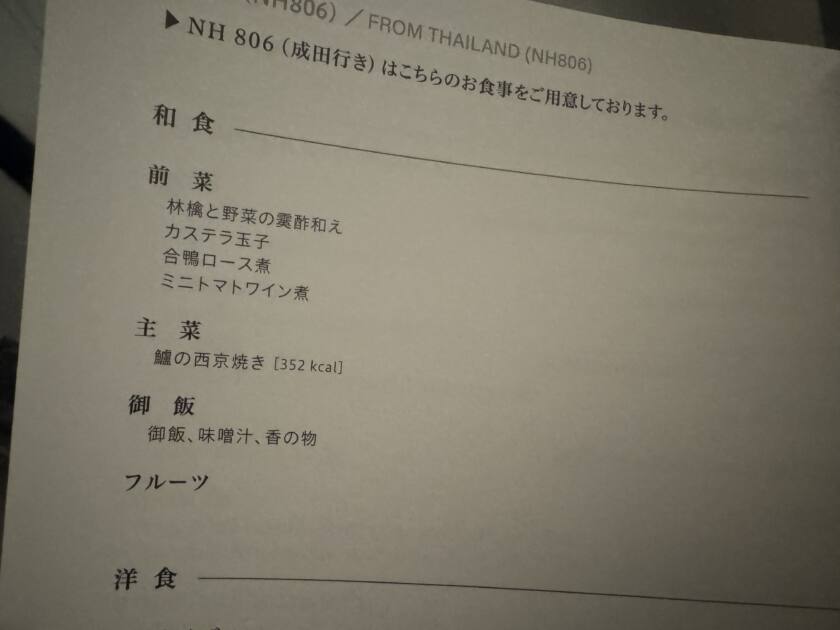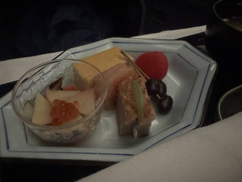 7:00頃の出発なのでフライトしてすぐから朝食を提供していましたが、私は爆睡してしまいましたので到着1時間前に食事をいただきました。
