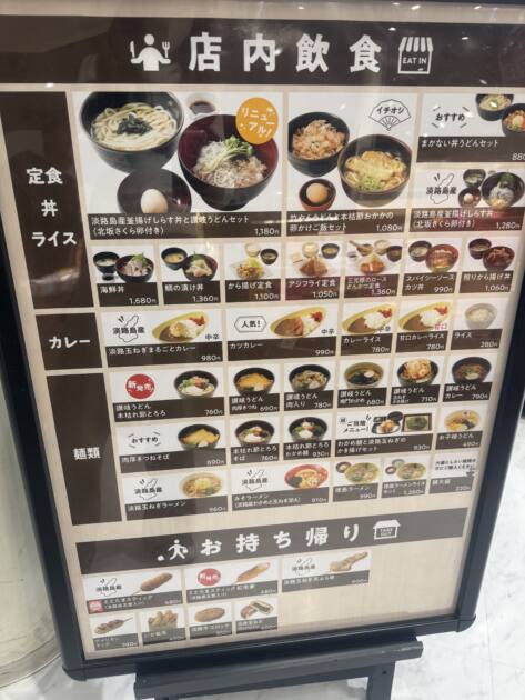 ご当地グルメのようなものがたくさんありますね。迷いますがかつお節と梅ととろろのうどんにしました!
