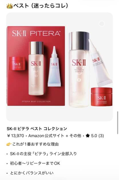初心者なので、ミニコスメセットがおすすめだとChatGPTに言われました。