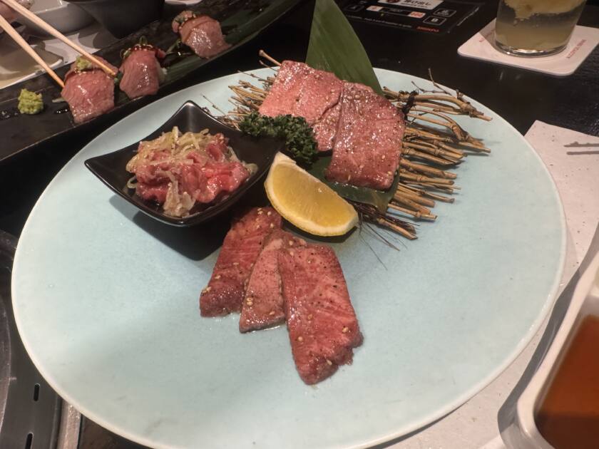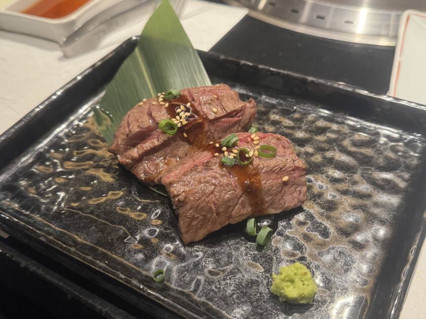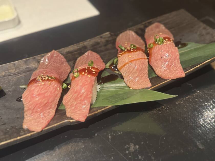 トラジ 投稿者:S.M(代表取締役) 投稿日:2026年4月4日 カテゴリー:2026年3月 出張・取材レポート 関西 焼肉トラジにて会食をしました! 総勢40名ほどの大会食です。 いただいたものはこちら。 肉寿司はとても美味しいぇす!!トラジ盛りはハラミが美味しかったです。 たんは3種取りは分厚いものも柔らかくてモッチリした感じがおいしいです! サーロインしゃぶしゃぶとたんのしゃぶしゃぶです! 薄いたんがものすごく美味しいです。 サーロインは脂がすごい!ライスに合います👏 たくさん大阪の方とお話ができていい会食でした! 近江スエヒロ 土山SA