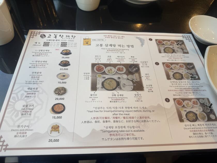 ひとりひとりの座席にサムゲタンの食べ方が書いてある紙が置いてあります。