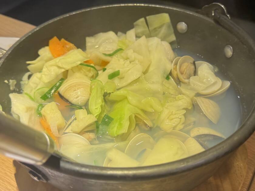 あさりとやさいのスープは体に優しい味です。