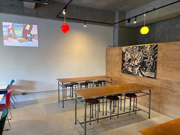 お店の中は一面コンクリート打ちっぱなしでとてもスタイリッシュでした。その分、色とりどりの照明や椅子が際立っていて、とてもおしゃれな空間でした✨