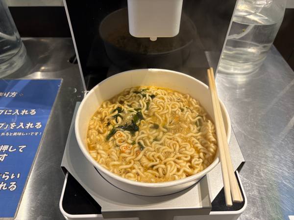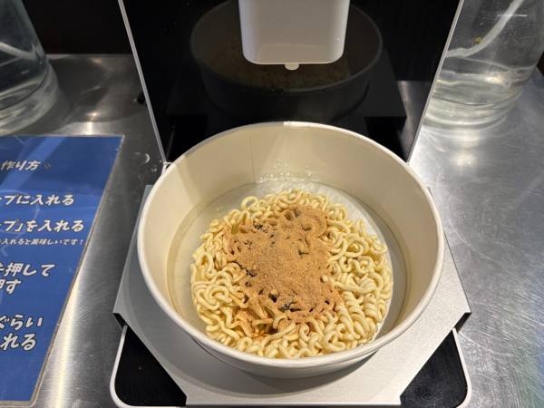 カップにラーメンを出して、かやくとスープを入れてスイッチON!あとは待つだけです!
