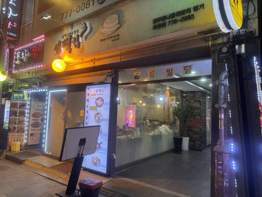 お店はこちらです。南大門市場から少し外れた場所にある飲み屋街のお店。