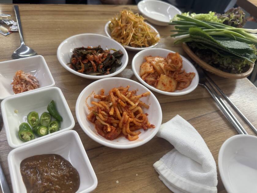 サムギョプサルのイメージって大きい豚肉をハサミでカットして食べる感じだと思ったのですがここのはもうすでにカットされてて、しかも薄い!