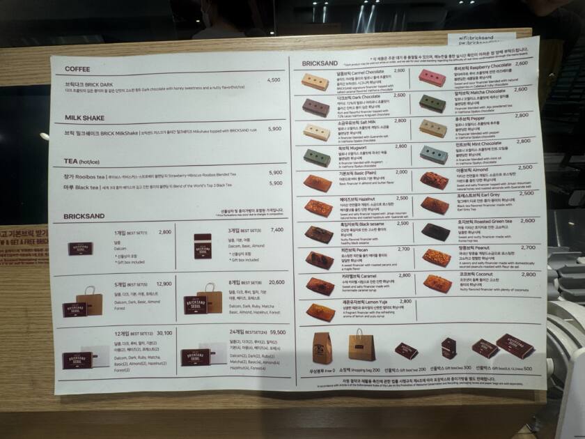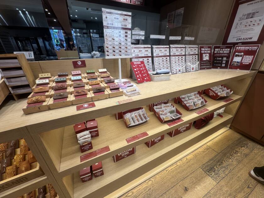 BRICKSAND 投稿者:S.M(代表取締役) 投稿日:2026年4月19日 カテゴリー:韓国 2026年4月 出張・取材レポート ブリックスタンドに来てみました! レンガのような形の焼き菓子が看板のお店です◎ 店内はフィナンシェがメインでたくさんのフレーバーが取り揃えられています♡ 韓国らしい映えスイーツですね。 手土産やばらまき用で購入する方が多いみたいですよ! 好きなフレーバーをえらんで箱詰めしてもらうことも出来ます! 店内で飲食も可能です🙆♀️ ブリックスタンドのオフィシャルグッズも販売しています! 韓国っぽいスイーツ土産が欲しい方にはピッタリです🥺‼️ チュロス HEMEKO