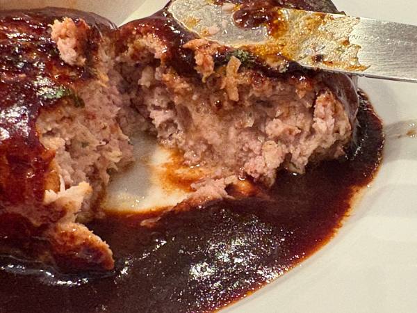 切った瞬間に、お肉の肉汁が吹き出しました!!