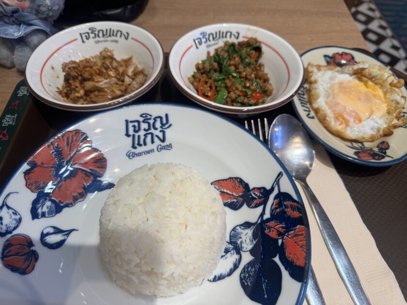 今日はガパオライスいただきます(*^^*) エンポリアムにあるタイ料理屋さんです。 写真を撮り忘れましたが緑の看板のお店!! 好きなおかずを2品+フライドエッグで200バーツくらいです。ちょい高め! ...