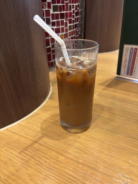 ドリンクには、やっぱりアイスコーヒーをいただきます!食後と食事前で選べたので、食事後に持ってきていただきました!おなかいっぱい食べた後にゆっくりドリンクを頂けるのがとてもいいです。この日は、オムライスでおなかいっぱいになってしまったので、次来た時は、ケーキを食べに来たいです!たくさん美味しそうなケーキがあったので、とても楽しみです♪
