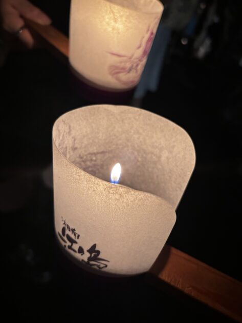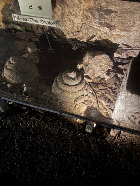 江ノ島の洞窟の中に入ってきました!第一岩屋に行くと、手燭を頂き、ユラユラ揺れるロウソクの火を頼りに暗い洞窟の中を歩いていきます😌途中で天井が低くなるので頭上注意でした⚠️歩いていると千手観音立像やとぐろを巻いた蛇の巳像など、いろいろな石仏があります。奥に行くと、洞窟の奥には、狛犬と石で造られた社殿を発見しました。この場所は「江島神社」発祥の場所だといわれているそうです!前に並んでらした方々と同じように参拝してから先に行きます!