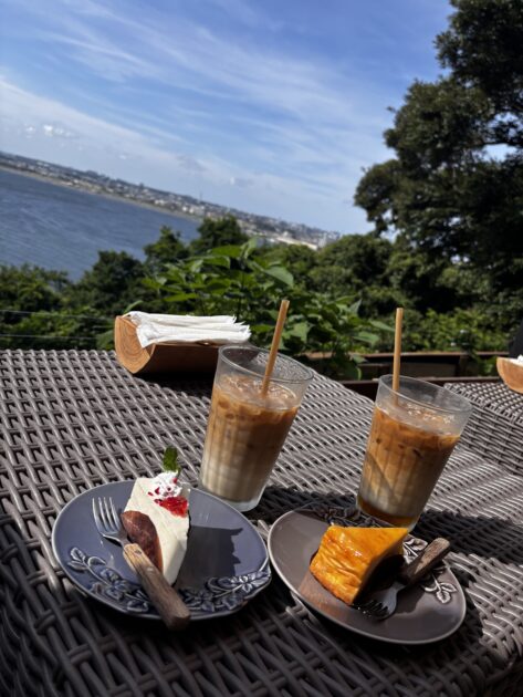 洞窟を沢山歩いたあとは休憩にカフェで一休みです!海風を浴びて、とても気持ちが良かったです😊トレスパレンテアクアという江ノ島内のカフェで、テラス席もあり、ペット連れ込み可のお店でした!お休みするのにとってもいい所でした♡