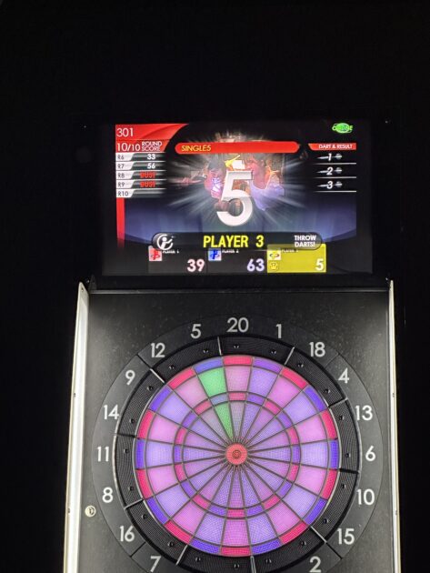 ここでまさかのダーツもできるということで、「じゃあちょっとやってみようか」