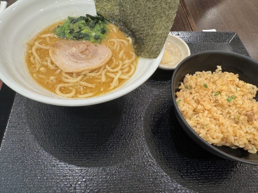 家系ラーメンは味薄めで何故かスープが温かったです。付属のニンニクを入れるとパンチが効いて美味しかったです!