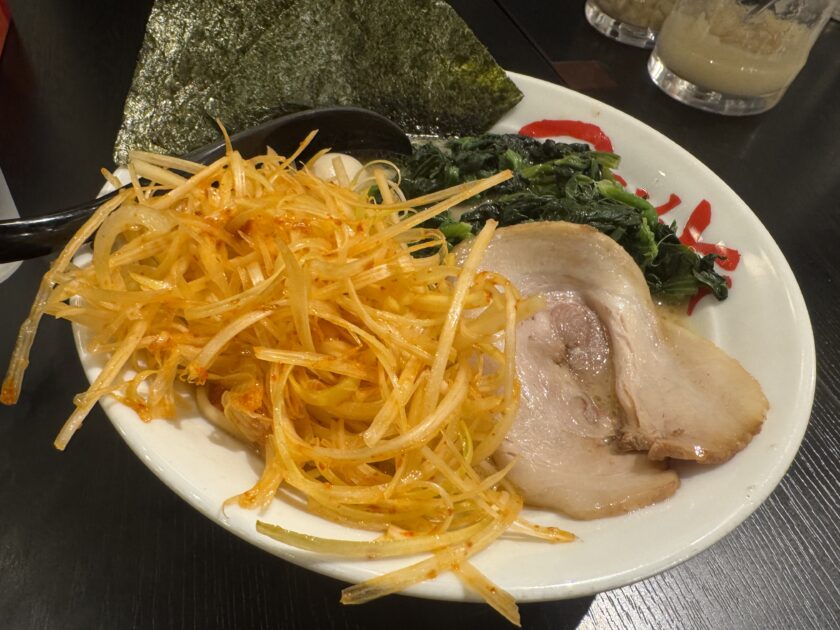 私が注文したのは豚骨醤油に青菜と辛ネギトッピングです!