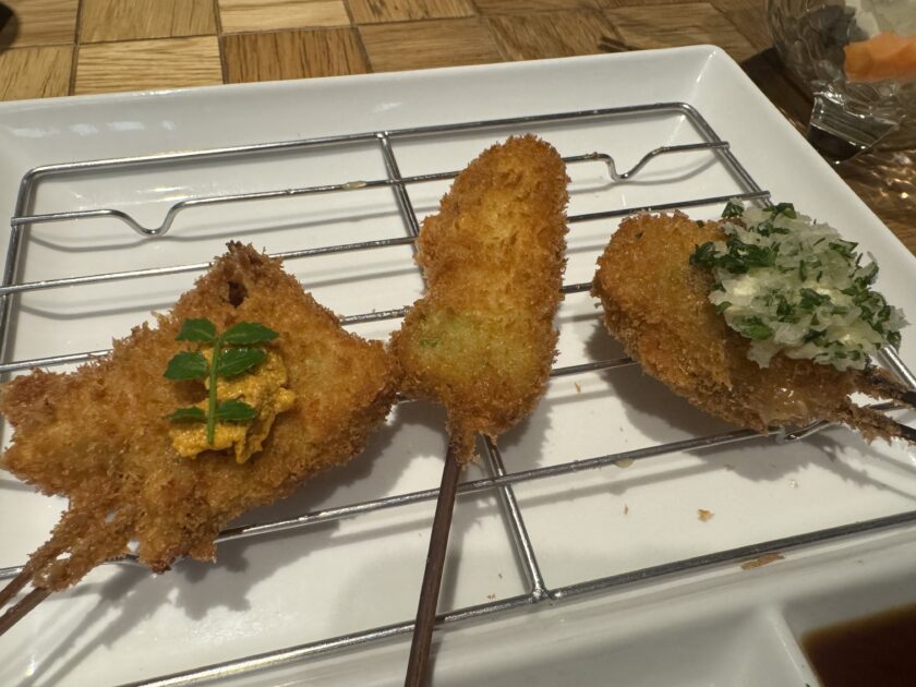 牡蠣の串カツがいちばん美味しかったです!安定に豚も美味しかったですよ〜