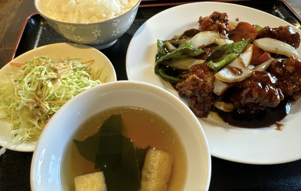 ボリュームもたっぷり。黒酢あんはとってもあつあつです。熱すぎてやけどしました。