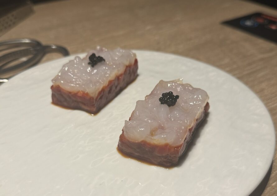 まずはユッケ。キャビアが乗っていて、白いのはエビでした!